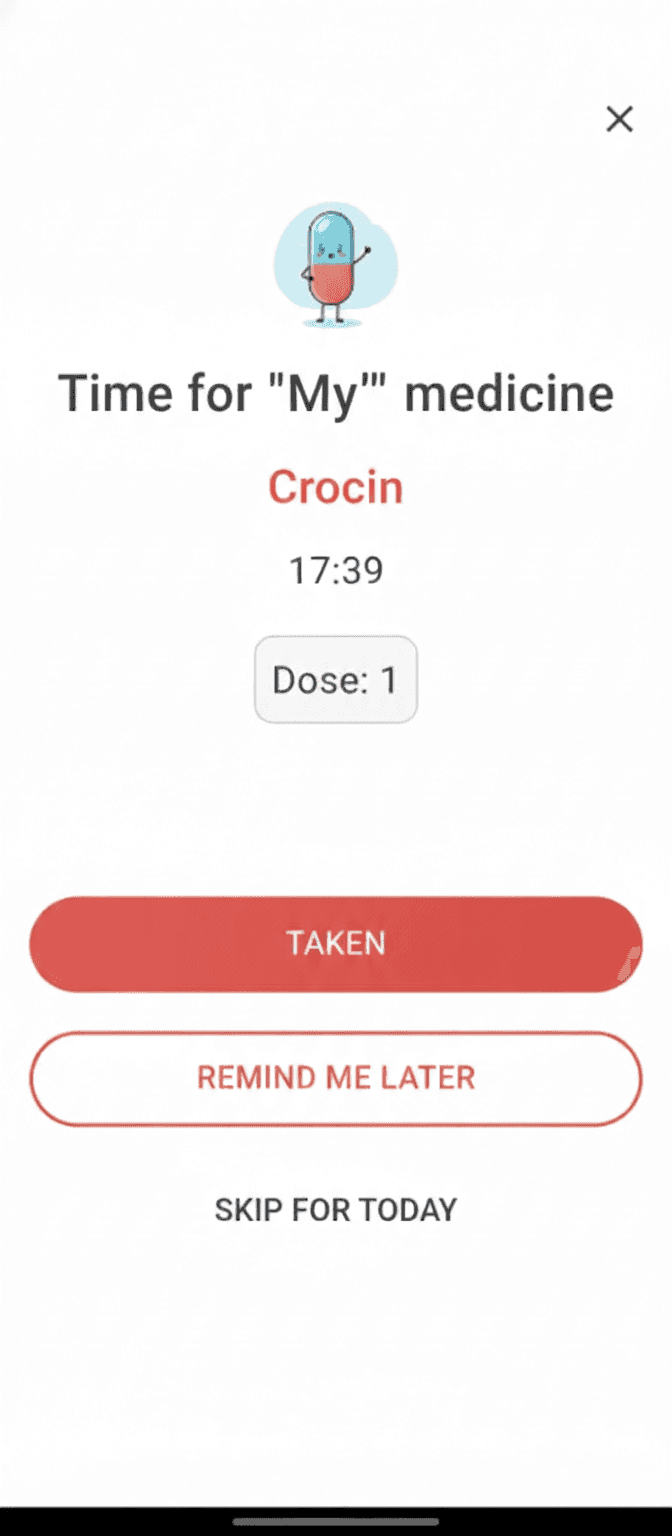 Easily adapt reminders for yourself or your dependent's dosage, timings, and special instructions made simple.